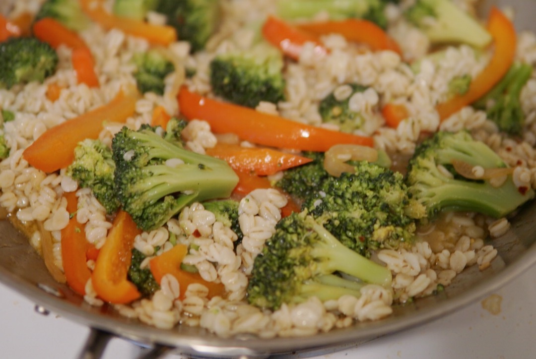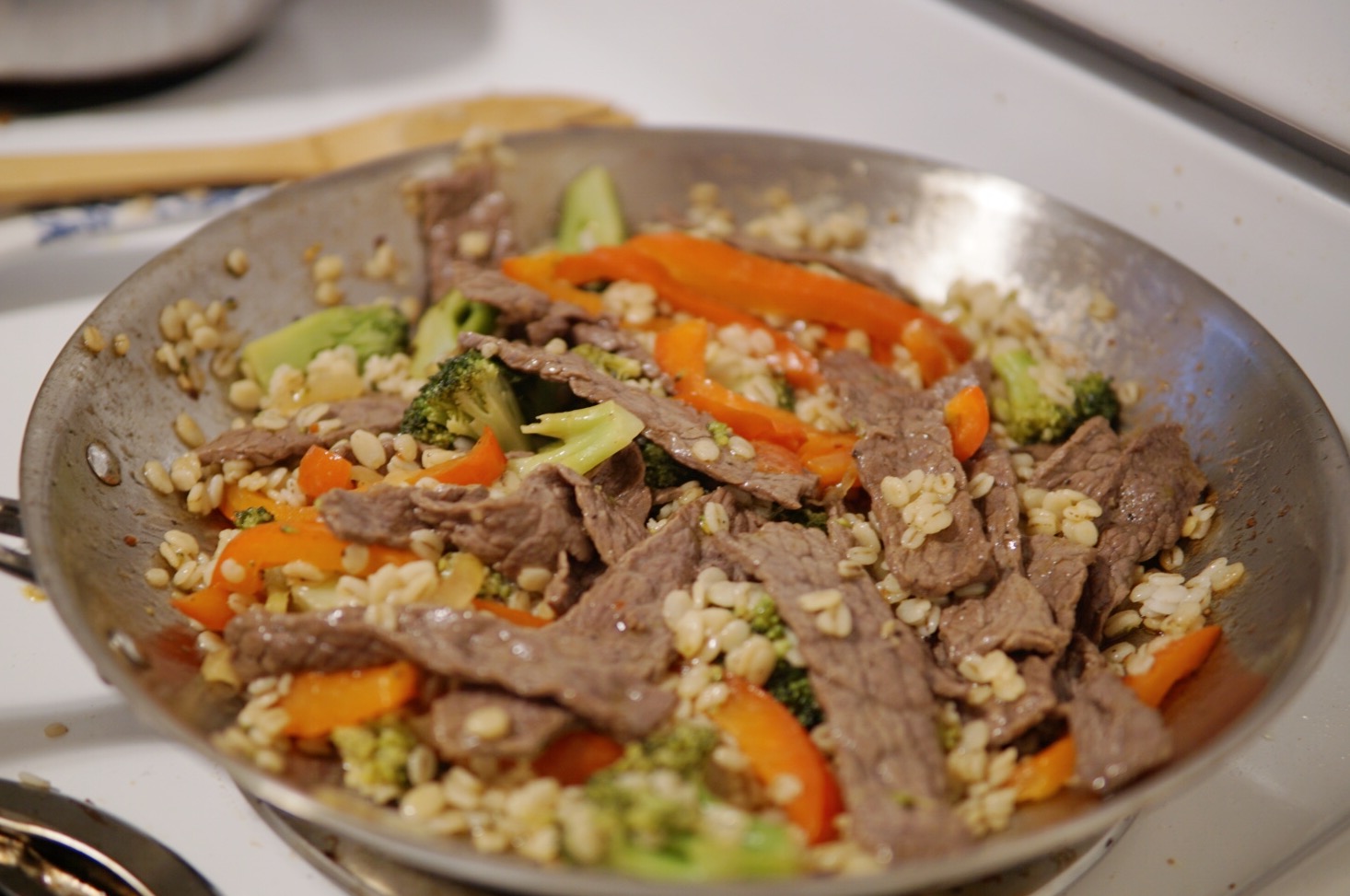 This recipe includes some of our favorite veggies: onion, bell pepper, and broccoli. It even has barley, which I firmly believe everyone should try! Flank steak is the ideal meat for this recipe, but we used a different beef cut this time and it was a little tough. I used Quaker Oats quick-cook barley, which only took 10-12 minutes to cook (amazing), but you can use any other kind as long as you follow the cooking instructions.